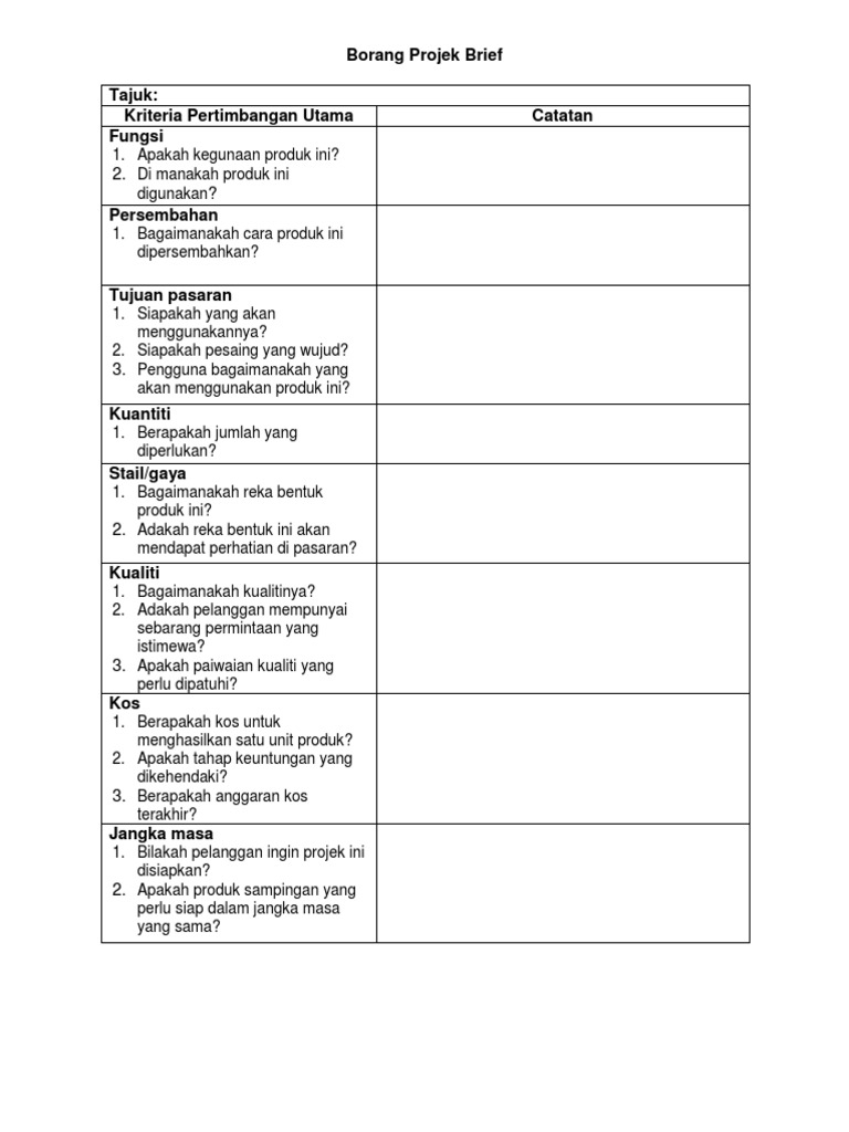 Contoh borang projek brif tajuk. Contoh Borang Projek Brief Rbt Borang Projek Brief Kumpulan 1 Tajuk Beg Tangan Serba Guna A Tajuk Projek 1 Apakah Jenis Produk Atau Perkhidmatan 2 Apakah. 211 borang kajian keperluan pelanggan bahagian.